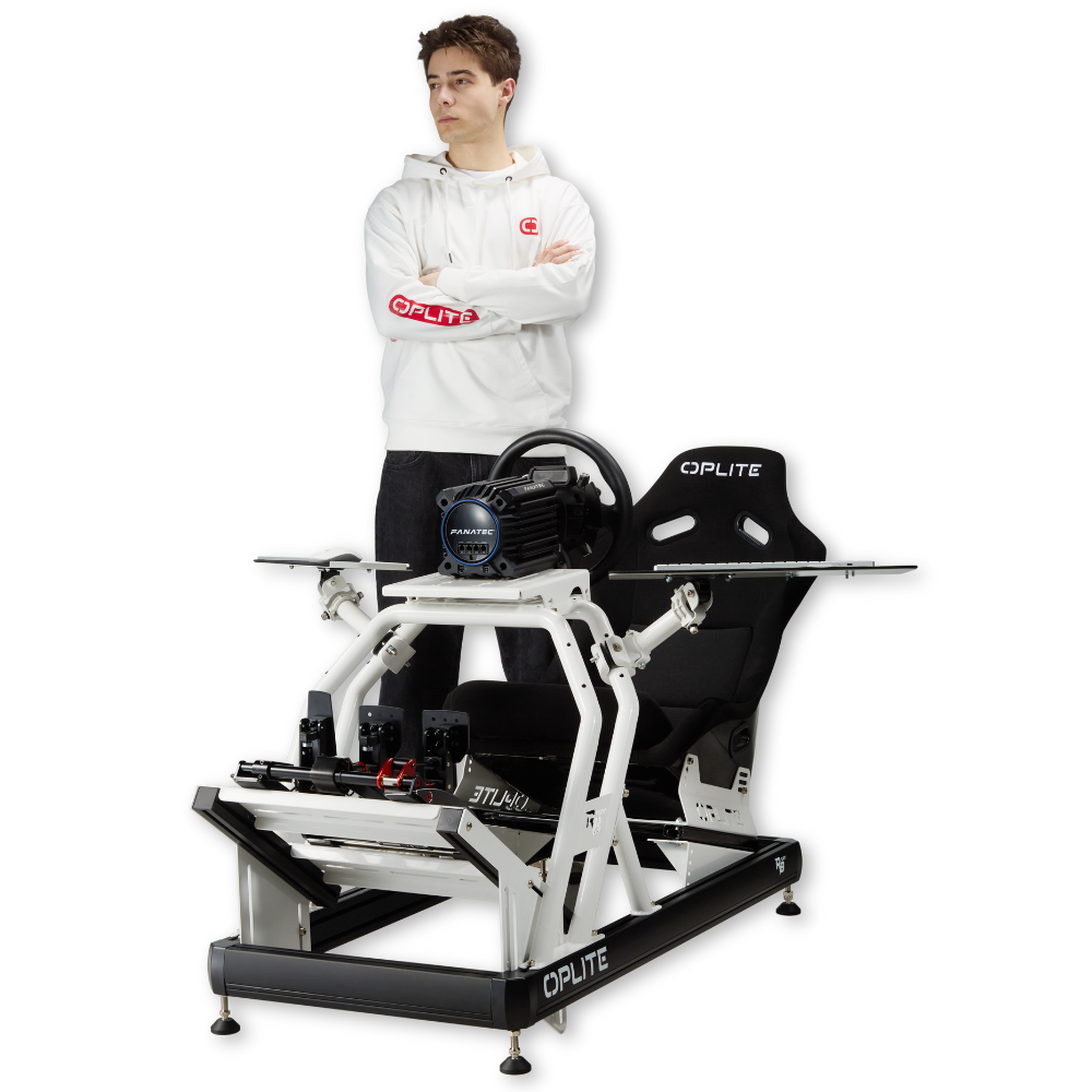 - Optimized immersion and ergonomics: seat inclination and raised pedal support
